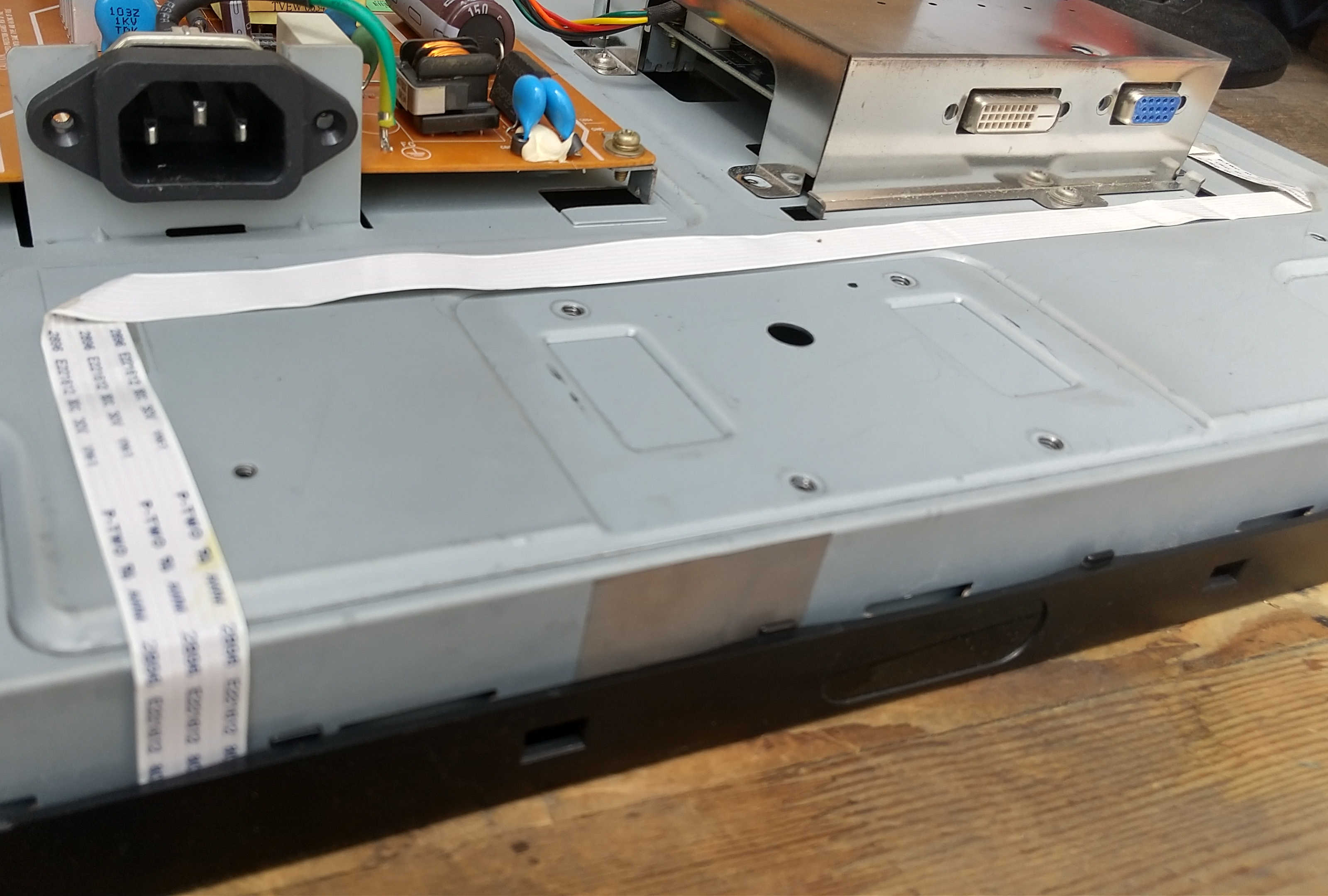 ところがどのコンデンサーも膨らんでいるものは無く、諦めて組み立てようとしたとき、ポロッと白いリボンケーブルが抜けおちた。