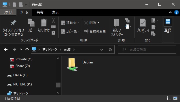 のように見えます。また、Windows側からLinux側のフォルダを見るには
