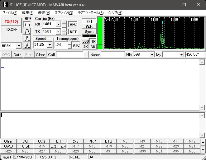 それぞれ、430のSSBモード帯で同一周波数にセットして実験開始です。