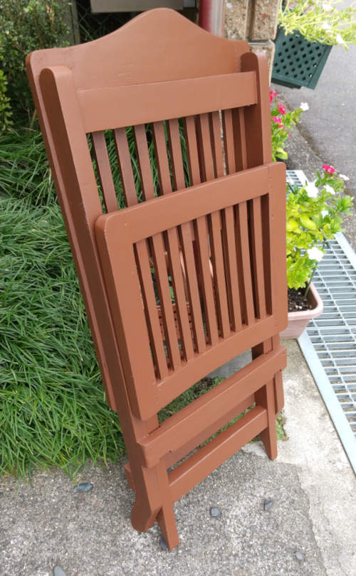 ネパールからやって来たベランダ用の椅子が、雨ざらし・天日干し・風雪に耐えて可愛そうなぐらいだったので、防水塗料を塗って少しだけ蘇らせました。