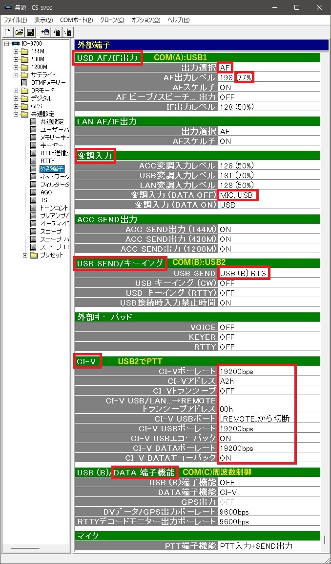 無線機ファームウェア(IC-9700)の設定