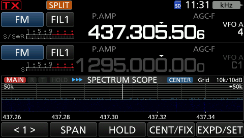 IC-9700 ノーマルモードでSPLIT運用しているところ。周波数方位・仰角とも追尾している。