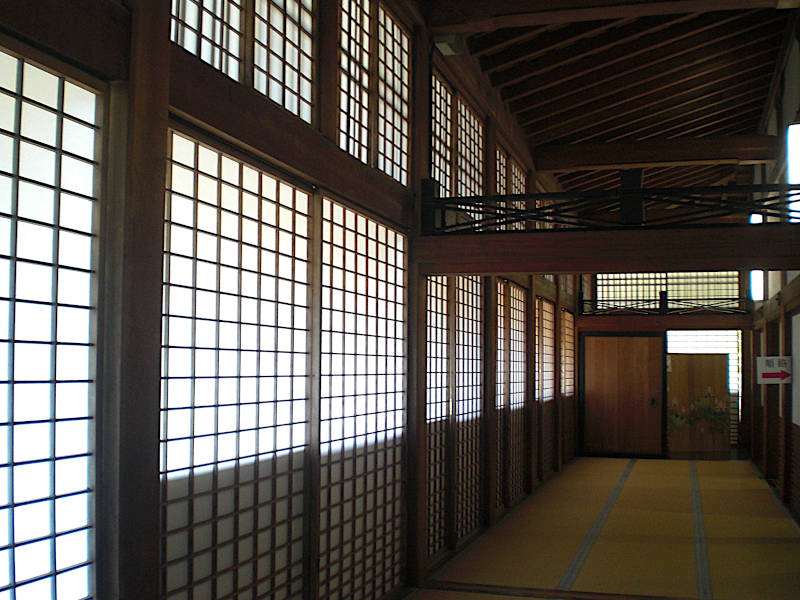 長方形の講堂、長い方の廊下両脇に二条ずつ計四条、全長50mにも及ぶ「