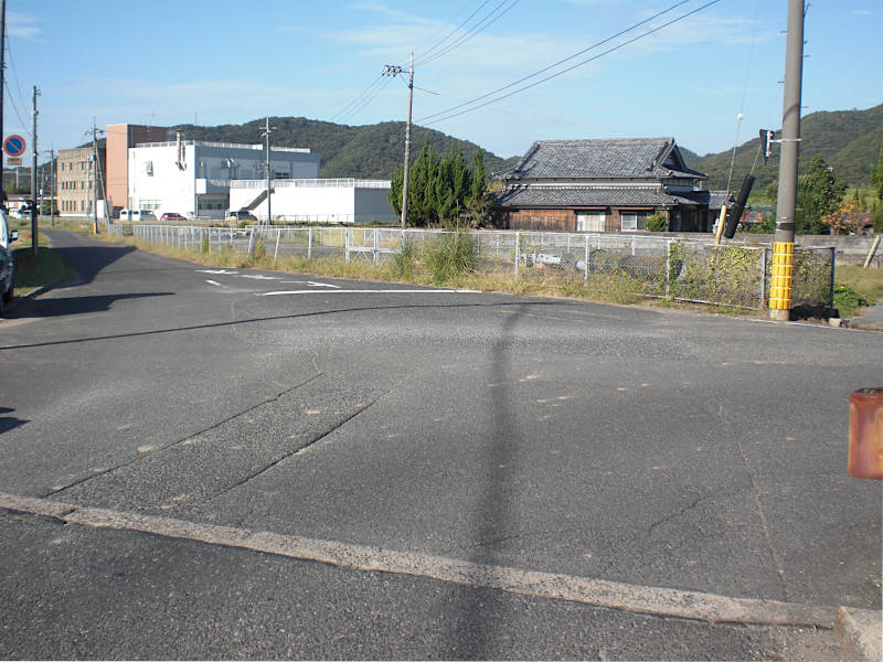 一度斜め右手(真西)に方向を変えて、少し先に堤防が見える交差点に来る。結論から言うと