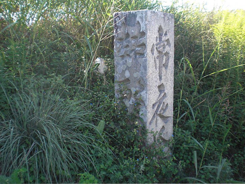 2号線と分かれて少し行くと堤防を河原へ降りる地道が有る。街道沿いに有ると記されている道標が見つからないのでちょっと下ってみると・・有った。