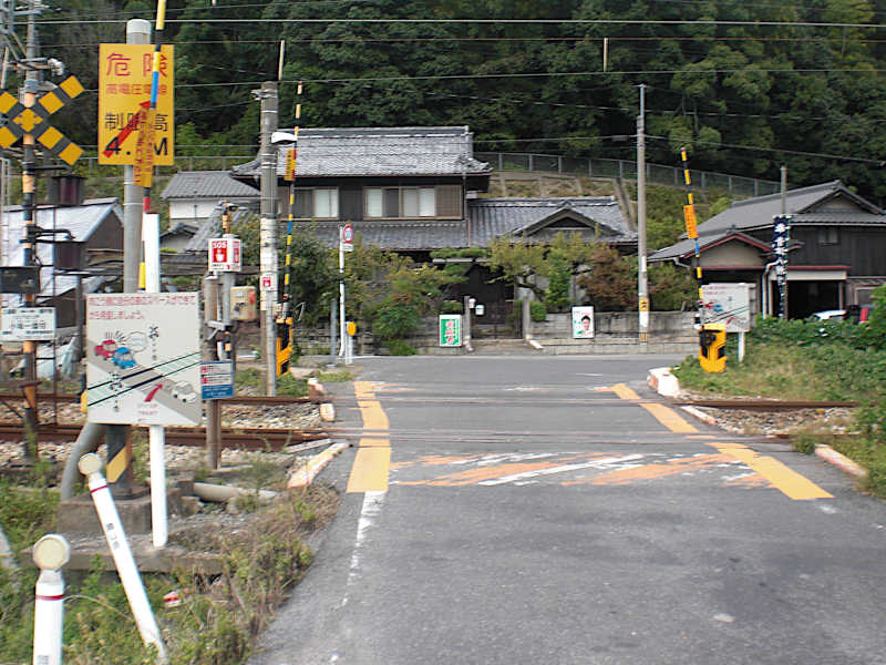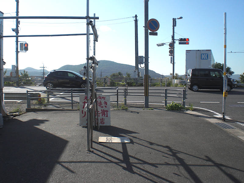 赤穂線が山陽本線に合流する長い踏切を渡る。ここからは一直線の道が続く。