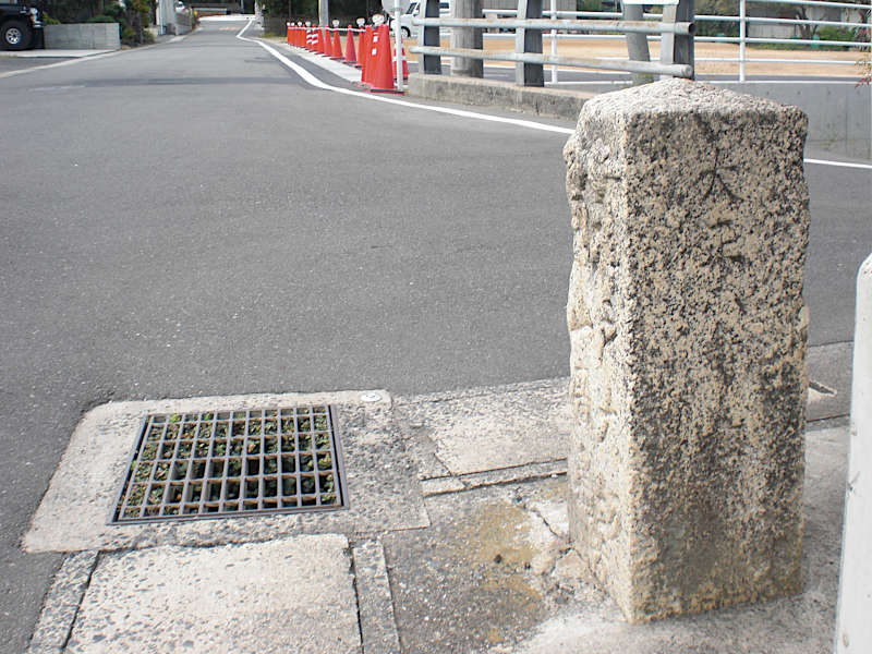 丁字路を左折するのが西国街道であるが、右へ取る道の案内に「