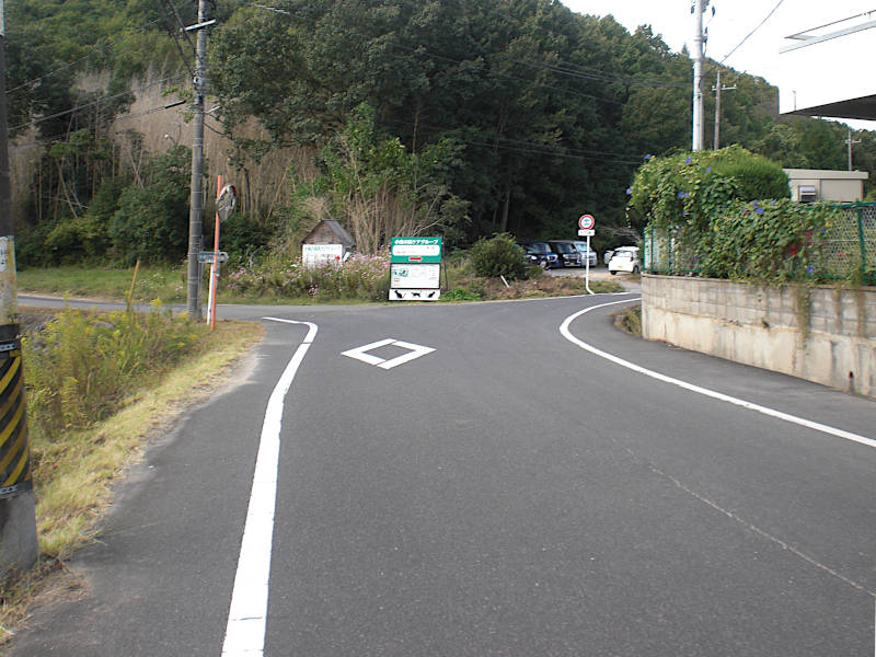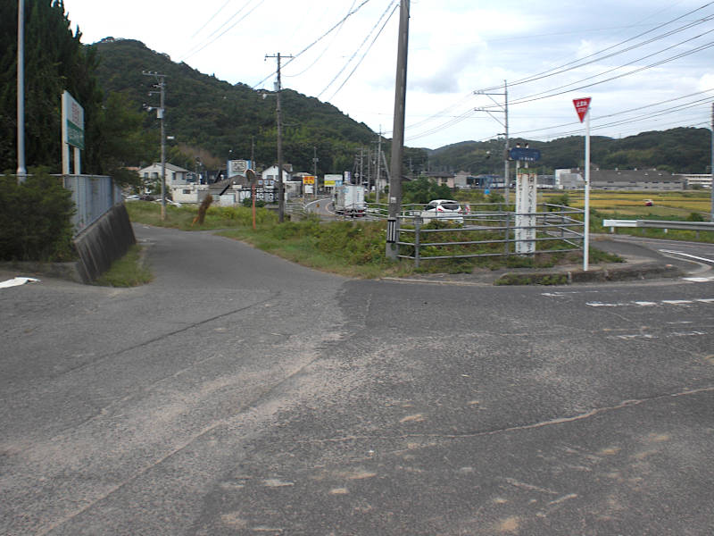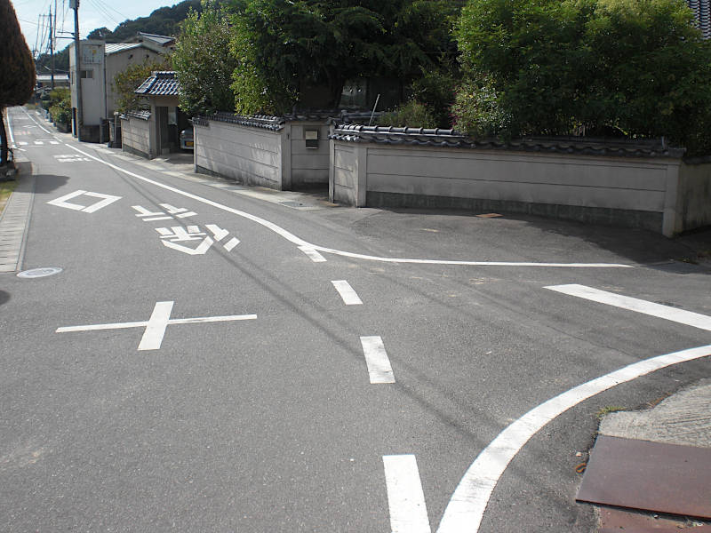 山裾をぐるっと廻った所にY字路が有る。右手もかなり街道らしい雰囲気のする道であるが、ここから南西方向(左手)に向け、どんどん岡山中心に向かう。