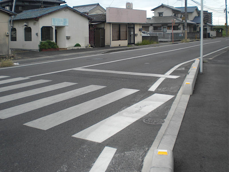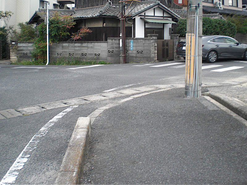 左側の歩道は柵が設けられこの先歩道無しになっている。そのためかここには横断歩道が有った。