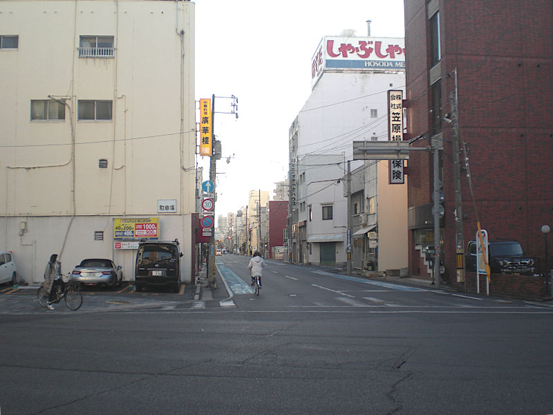奉還町西口]という交差点に出る。丁度直進となる方向に旧街道が続いている。