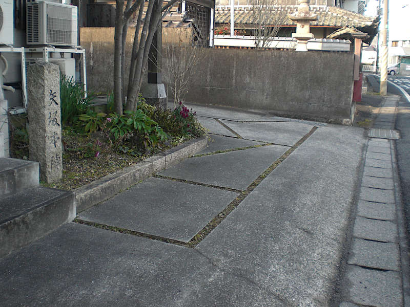 西国街道はカーブせず直進するが、標石の前に