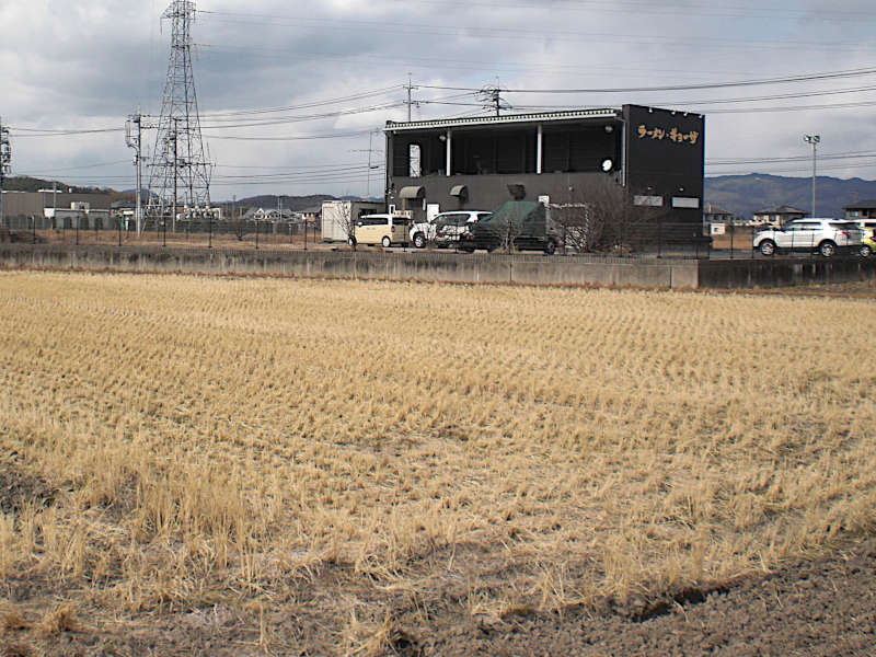 山裾を出て広々としたところで右手へ逸れる西国街道が有る。(13:41)