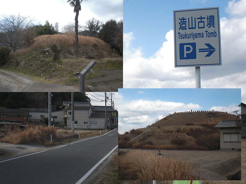 山裾を回り込むと小さな集落が有り、目立つのは古墳、古墳また古墳。写真は街道沿いに位置する5号・6号古墳である。(13:26)