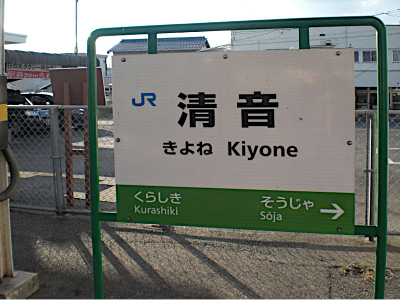 高架に沿って清音駅にはすぐ。無人駅なので icoca で改札通って出ても又駅舎に戻っていすに座ったり又出たり自由度が高い。