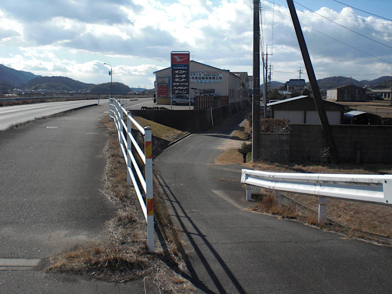 真っ直ぐな国道が緩やかに左カーブし出す辺りに横断歩道が有る。次に右に入るのでそのまま行きたいのだが側道が無くかなり危険。