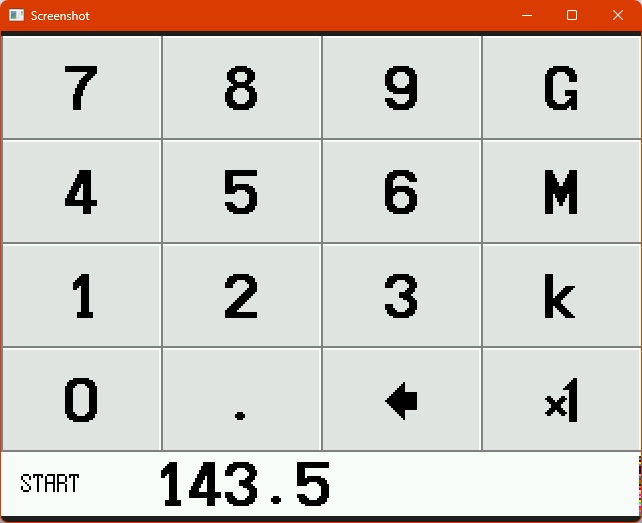 それぞれの項目で数字キーが表示されるので周波数を入力する。図では 143.5 MHz を入力している。決定は [