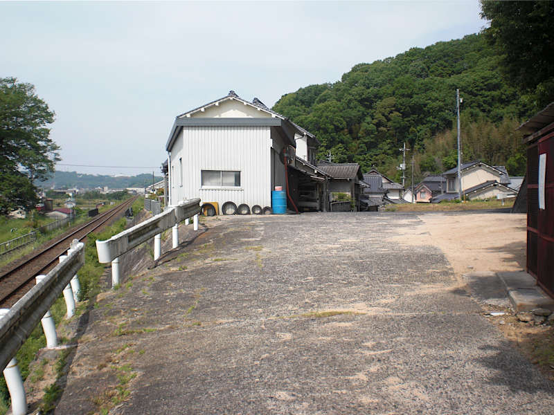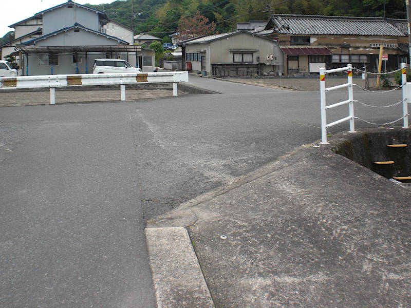 井原鉄道の高架を過ぎて集落に入ると、白く見えるコンクリートの路地が有る。