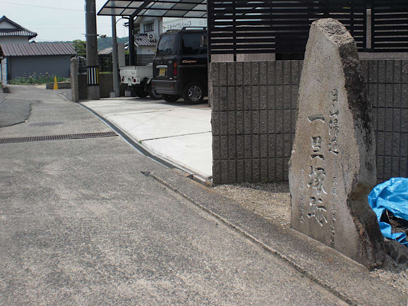 気が付かず一度通り過ぎてしまった。この緩やかに左カーブした道は車社会になった現代に着けられたもので、西国街道は少し手前を左折する。