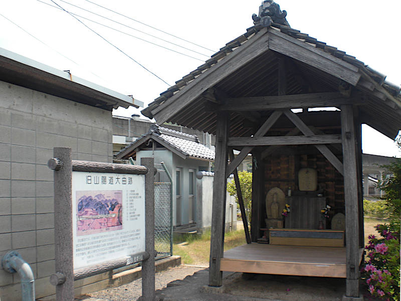 少し南下すると十字路に来る。ここで左から来る旧山陽道と合流して右手(西方)へ向かう。