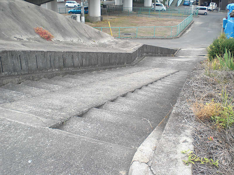 左手の坂上に有る横断歩道を渡り階段を下りたところが西国街道である。(16:33)