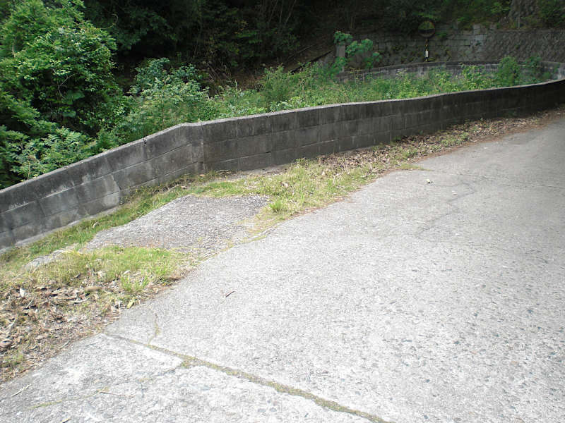 登り切ると三叉路のアスファルト道の角に出るが、メインの車道からは離れるように右折する。(15:08)