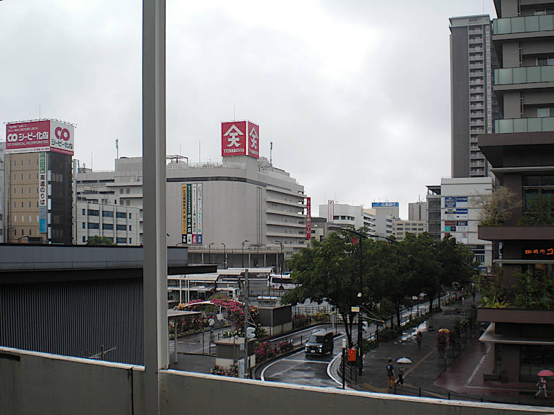 雷・雨・霰?状態は熟睡している間に過ぎ去り、残り雨状態。福山駅南口方面。