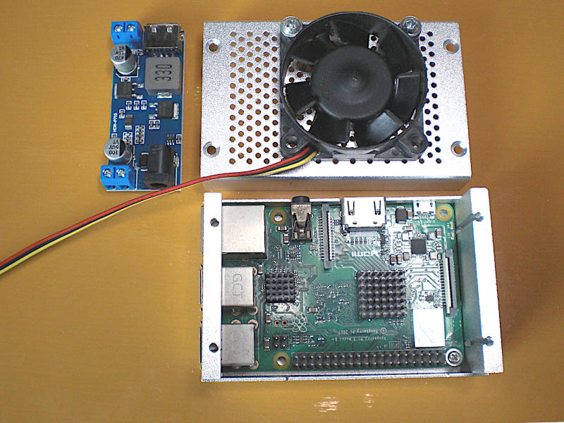 - 元々稼働していた状態はこのアルミケースに Raspberry Pi が入って直接 5v 給電とLANのみ。