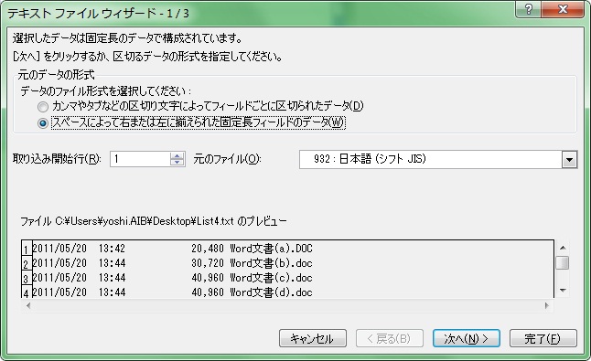 であったと仮定してこれからの作業を少し難しくするためである。実際にメモ帳でこのように修正した List2.txt を使用する。