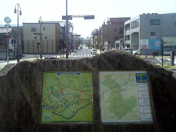 9時40分。いよいよスタートである。右側の建物の壁に街道の地図が掲げてある(左・右写真)。