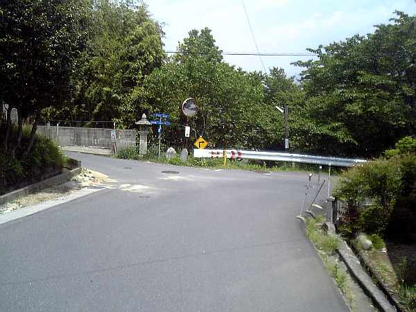 左にカーブしながら坂を上ると、比較的大きな三叉路に来る(左・右写真)。