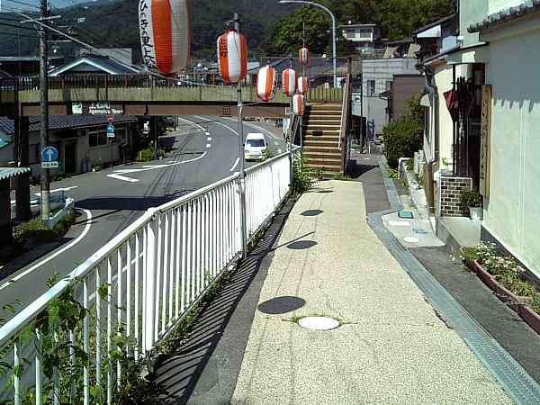 町並みが疎らになった辺りに、細い歩道が登っていて
