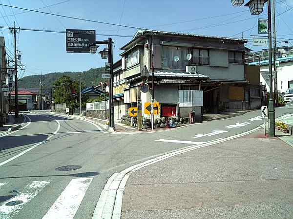 上松小学校を過ぎ、初めての交差点(左・左写真)。