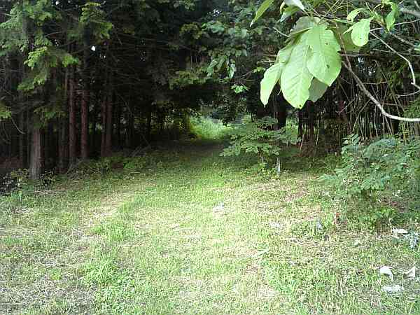 その竹やぶに沿って草の生えた細道が、ゆったりとしたスロープで上っている。