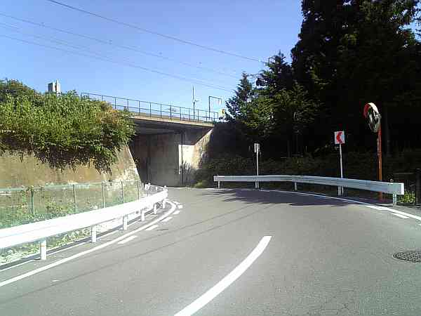 どんどん近付いていた工場(昭和電工)の前を過ぎると、もう一つの中央本線(東京方面)のガードをくぐる(左・右写真)。