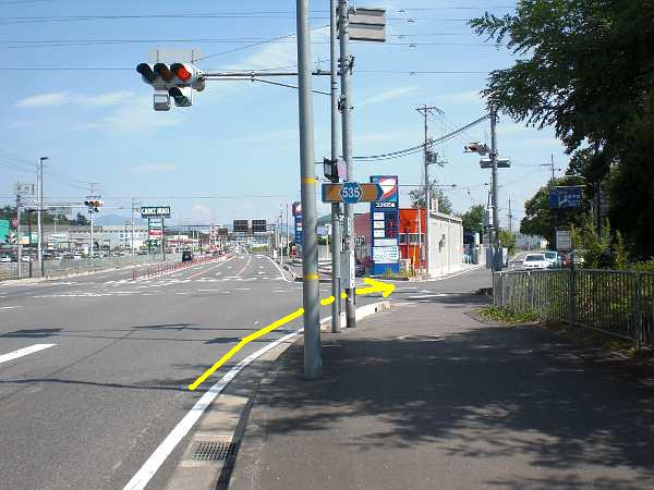 右側は側道が無く渡れないので注意)