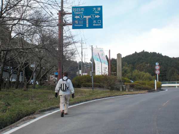 関の子萬のもたれ松」という碑のあるところで国道一号線と合流する。
