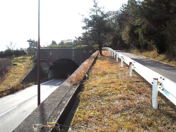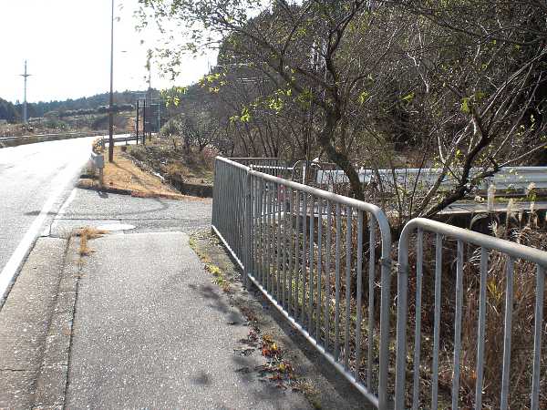 坂を上っていくと下り線のトンネルがもうそこという所で、歩道が途切れる(右・左写真=11:00)。