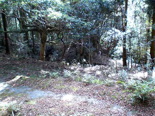 茶畑を少し行くと、鬱蒼とした山林の入り口に「