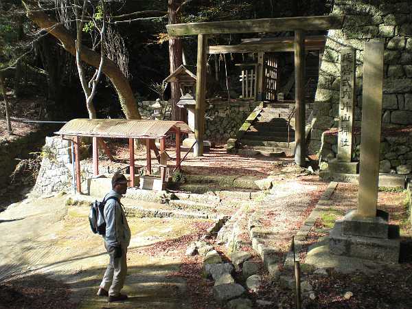 片山神社」の鳥居前に下ってくる(左・左写真=11:28)。