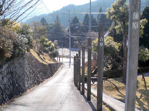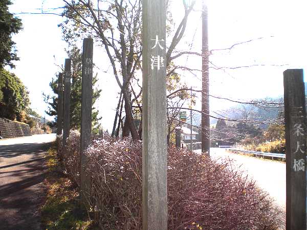 五十三次を模した木柱が左側に並んでいる(左・左写真=12:08)。