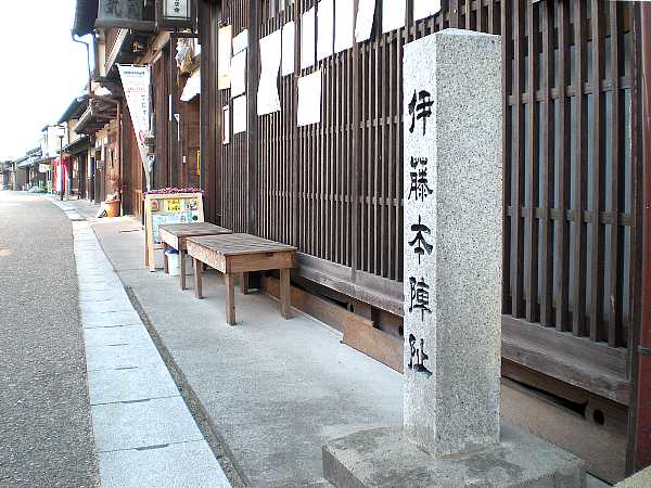 関宿伊藤本陣跡」の石碑が立っている(左・右写真=13:32/24921歩)。