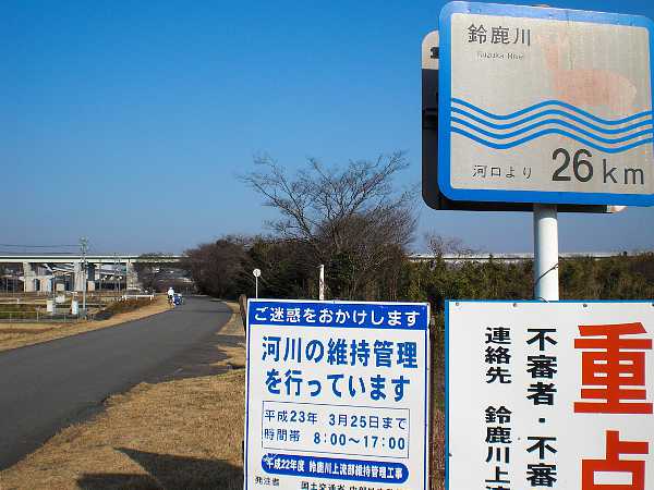 すぐに鈴鹿川に注ぐ支流(小野川)を渡る。渡りきったところを川に沿って右折なのだが、