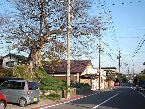 川沿いをなだらかに下っていくとY字路があり、左側がこんもりと盛り上がるように上っている。