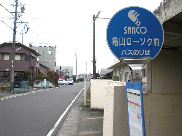 亀山城跡」の見える今日のスタート地点。左へ県道647号と書かれているのが前回来た旧東海道。