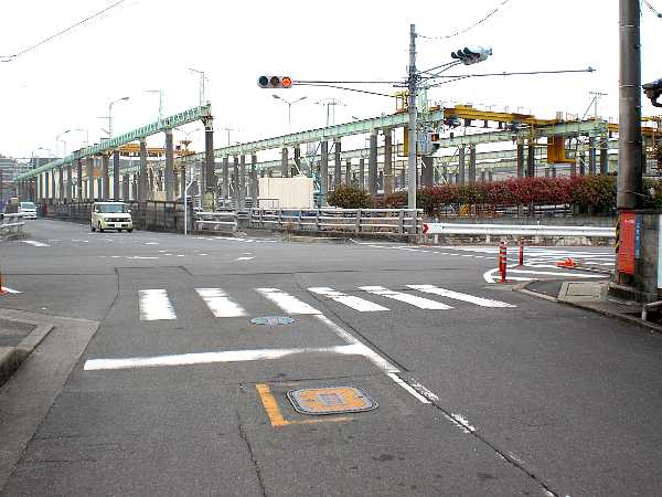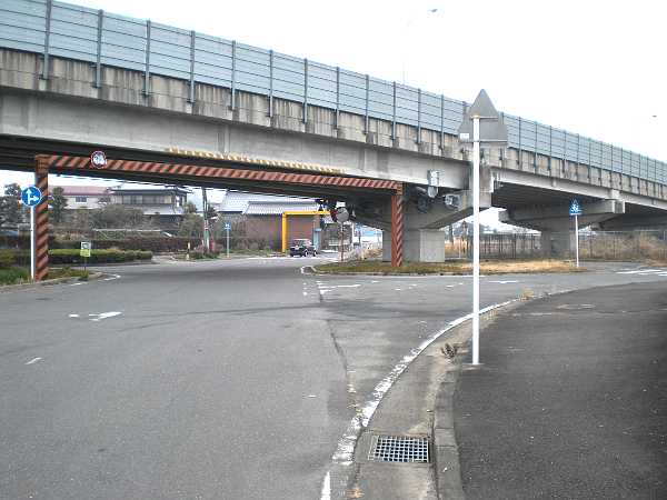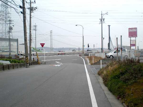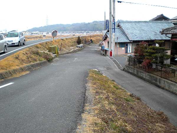 橋の袂の丁字路に出る(右・右写真=12:20)。この突き当たりの道が本来の東海道で関西本線で行き止まっているが、名残がある。