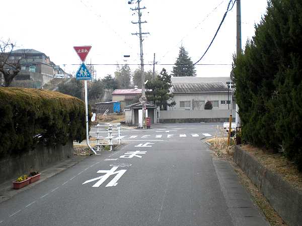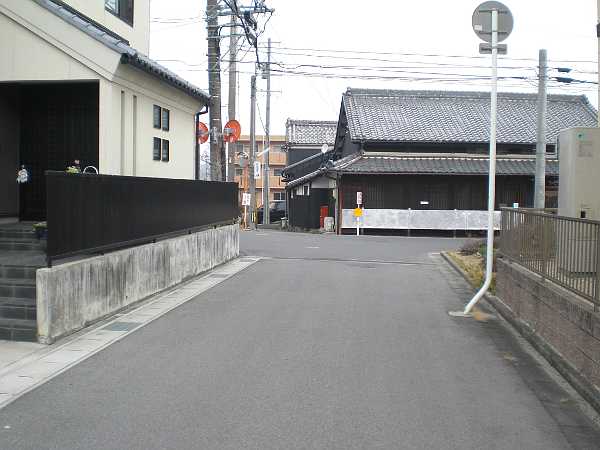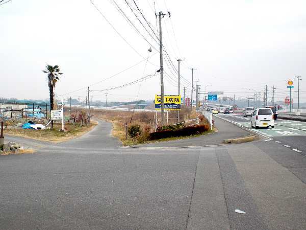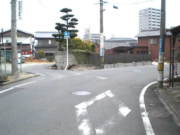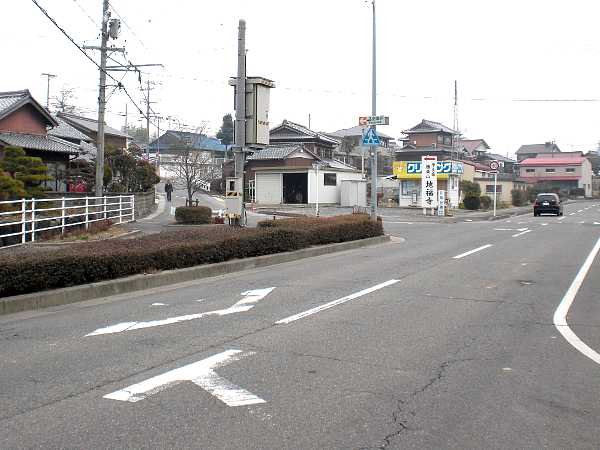 十字路になっているが右へ折れ、坂を上って国道の信号を左折する。つまり、枡形である。