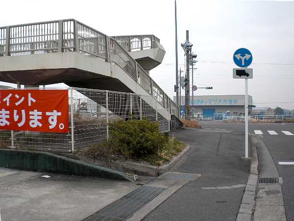 井田川駅前を通り、右へ大きくカーブすると関西本線の踏切を渡る。