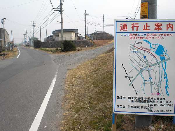 「この先通行止め」にはっとしたのだが、旧東海道はその堤防道ではなく[