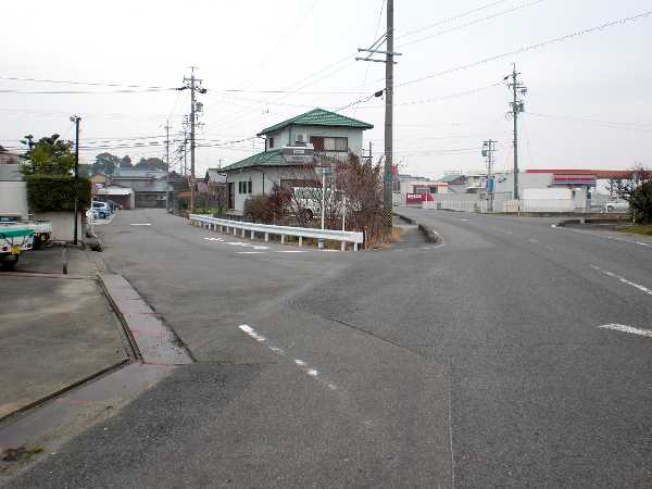 鈴鹿川沿いに大きく右にカーブし、さらに左へカーブして川から逸れる辺りにガソリンスタンド(右側)と、