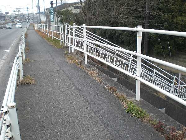 [追分]信号から100m余りいった所に歩道橋があり、そこから旧東海道は左へ逸れていく(右・左写真 =14:35)。